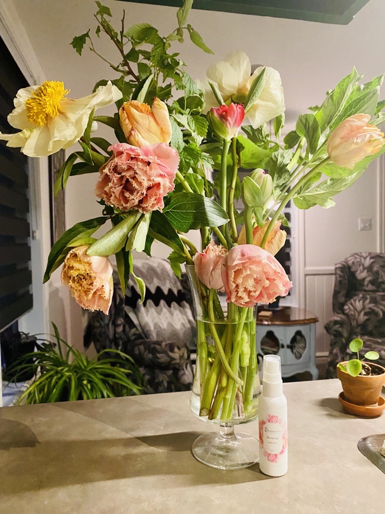 Difficile de ne pas être tentée par les produits cosmétiques au parfum de pivoine. Plusieurs produits parfumés créés par Lizianne (Lili) sont disponibles à la boutique, et ce, en vente libre et autonome. Tu passes, tu marques, tu paies et tu repars avec tes items. Quel service ! Parfait pour un cadeau et pas besoin de penser aux heures d’ouverture. Un savon, une crème de corps, de l’essence de pivoine, des semences… quand tu aimes les produits de beauté, c’est facile de tous les vouloir ! L’eau de linge et un bouquet du jour ont trouvé preneuse ! J’apporte mon expérience à la maison!